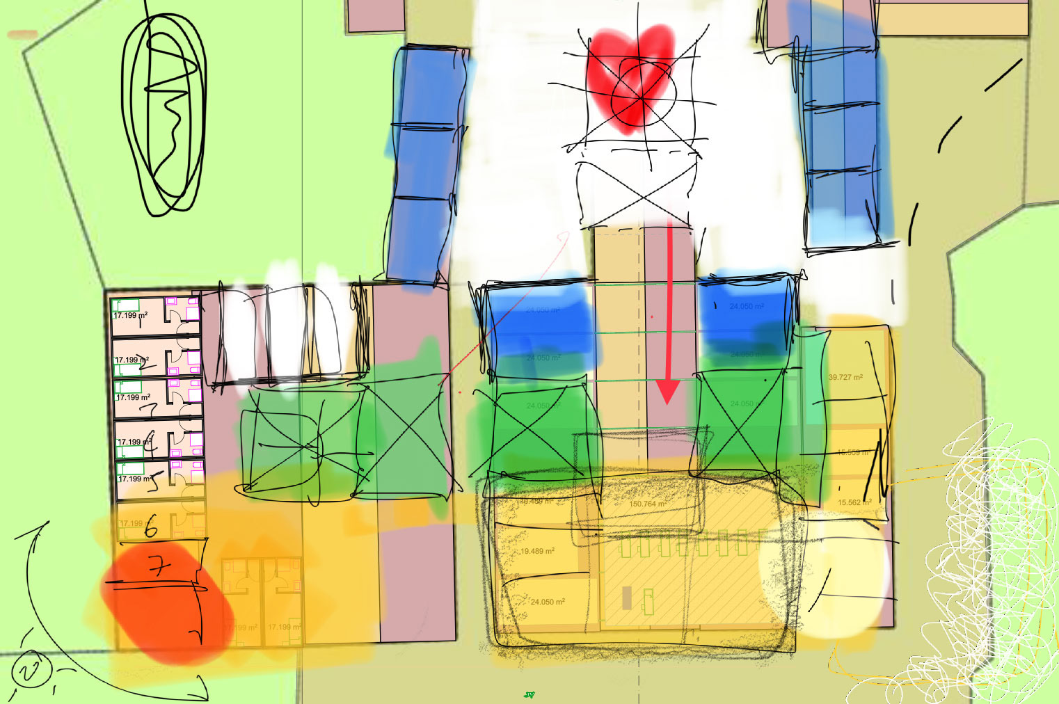 We investigated a mixed-use for the site, with glamping (via license), community spaces, offices to rent, a museum & restoration of all the original farm buildings. The long term plan was for a rural retreat. These proposals would provide a flexibility of uses to allow the business to grow & change.