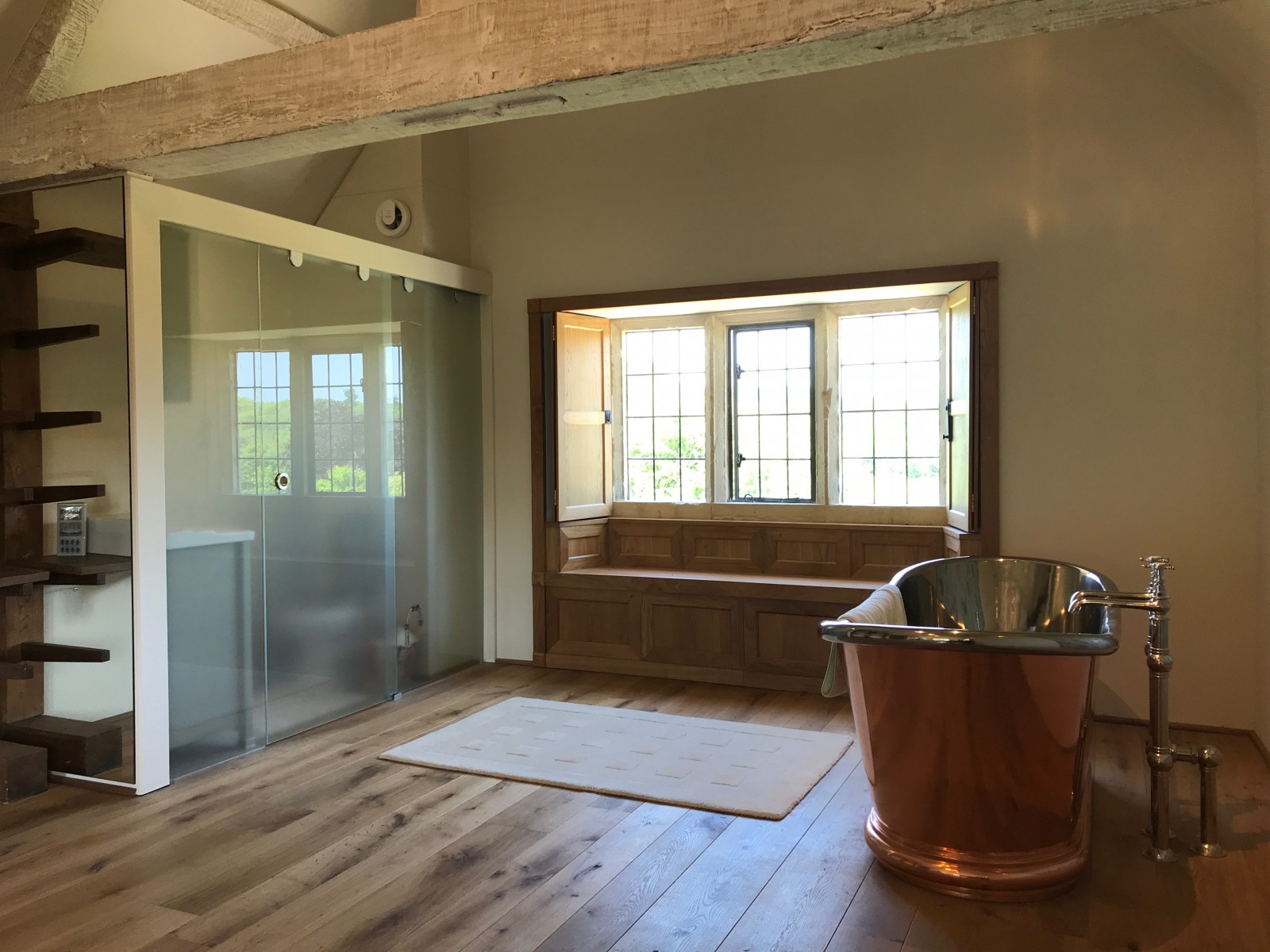 Manor Farm is a delightful Listed 18th Century 'model' farm on the site of and incorporating remnants of a former Manor. The buildings and grounds are currently undergoing major refurbishment and alterations in close liaison with the conservation officer. Sensitive stonework repair has been undertaken by specialist masons. All the roofs were stripped, repaired and retiled; the lean-to loggia and dovecot were extensively repaired and re-roofed with stone slates, the original material. Replacement and additional bespoke metal framed leaded light casements have been installed in Daulting stone or Oak surrounds . All the services were completely renewed throughout the house, with new bathrooms and kitchen have been sensitively incorporated.