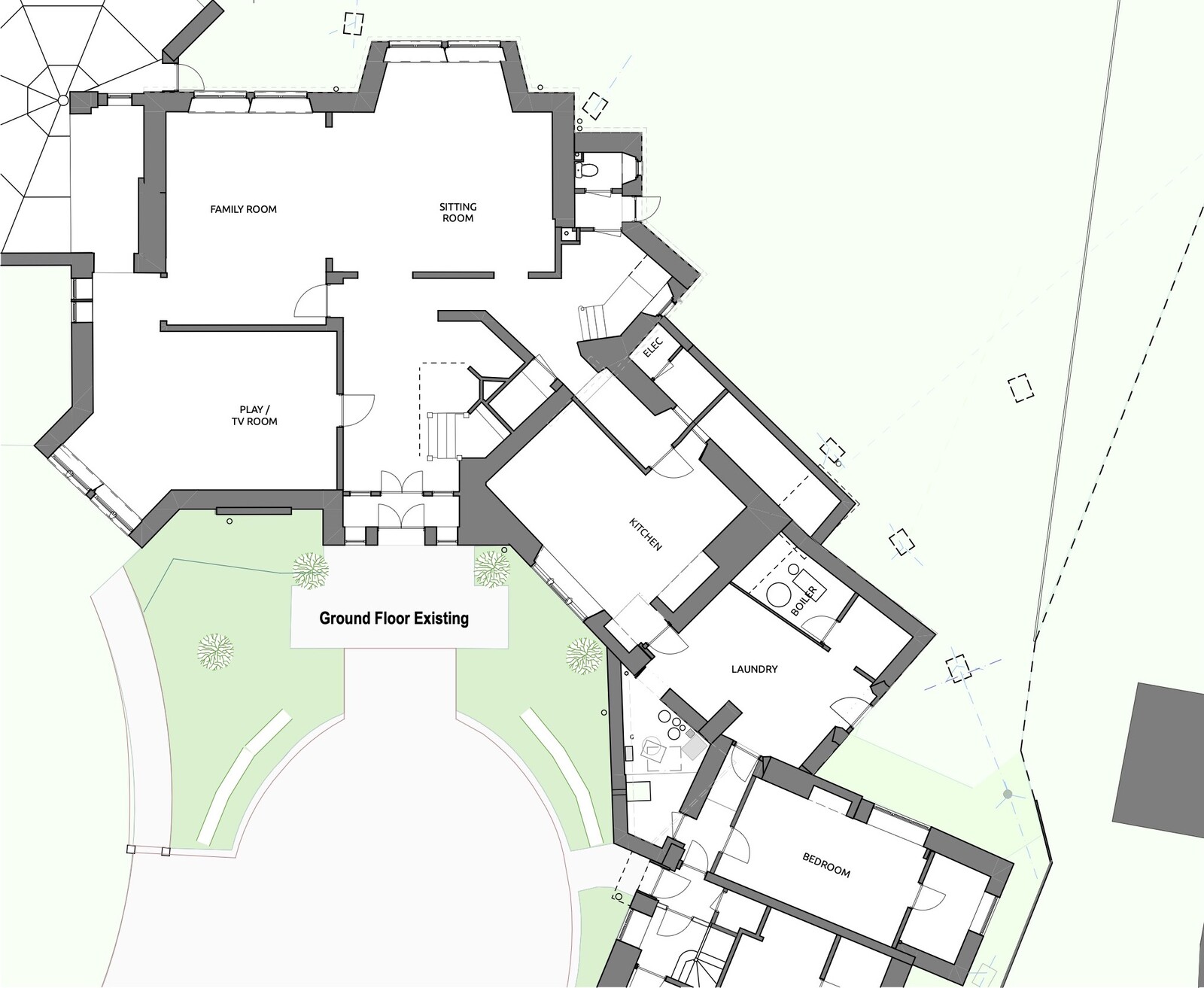 An imposing Country House with a chequered history, was in need of some rethinking. Previous use as a Hotel with the strap line sign 'Sleep with Us' has left the building with a hangover. Our clients wanted to bring the building back into use as a comfortable family home, without the excessive en-suites, commercial kitchens, regulation hotel fire doors and external fire escape stair.