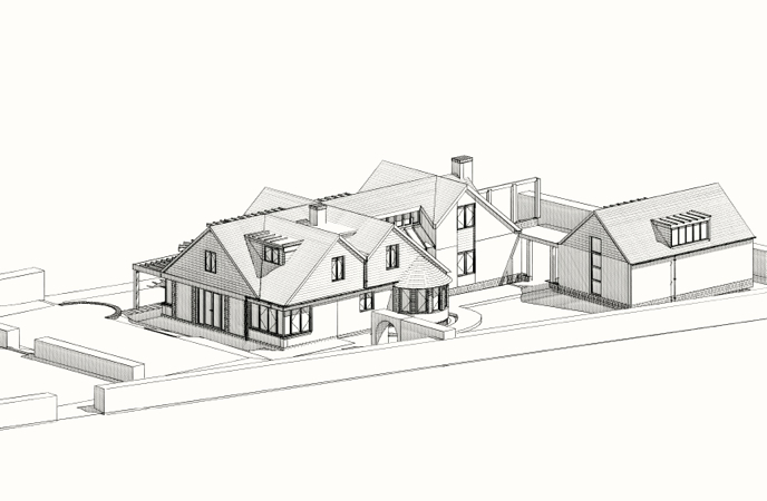 This grew from a 1950’s farmworker’s bungalow to a comfortable 5 bedroom house. It now benefits from a ground source heat pump supplying ample hot water and heating. The new family room which links with the garden comfortably hosted 24 for Christmas dinner.