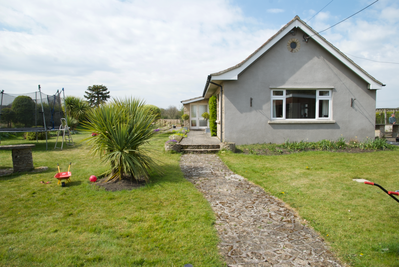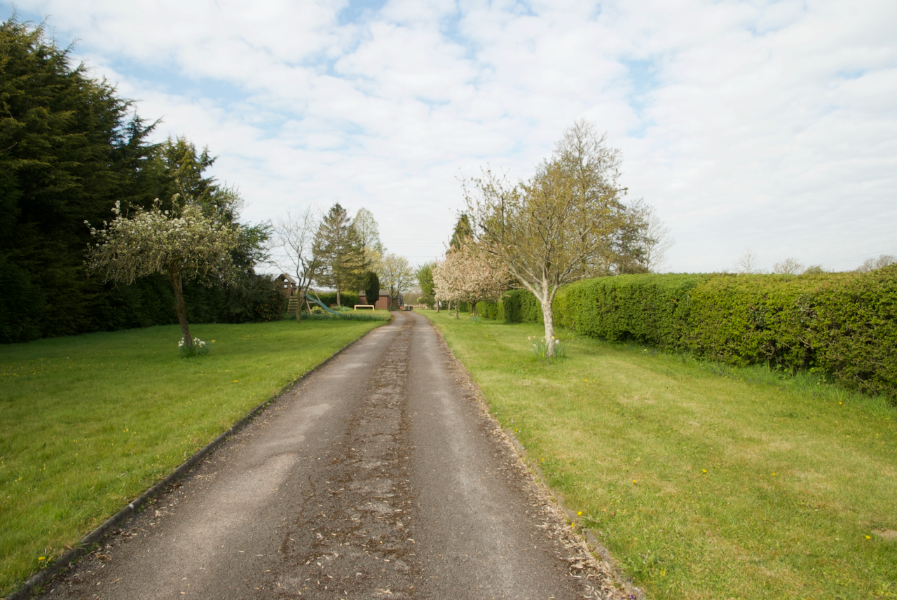 An impressively long tree-lined driveway led to a single storey stone built cottage, with a hidden '70s entrance porch to the side and 80's feature pvc windows and eaves.