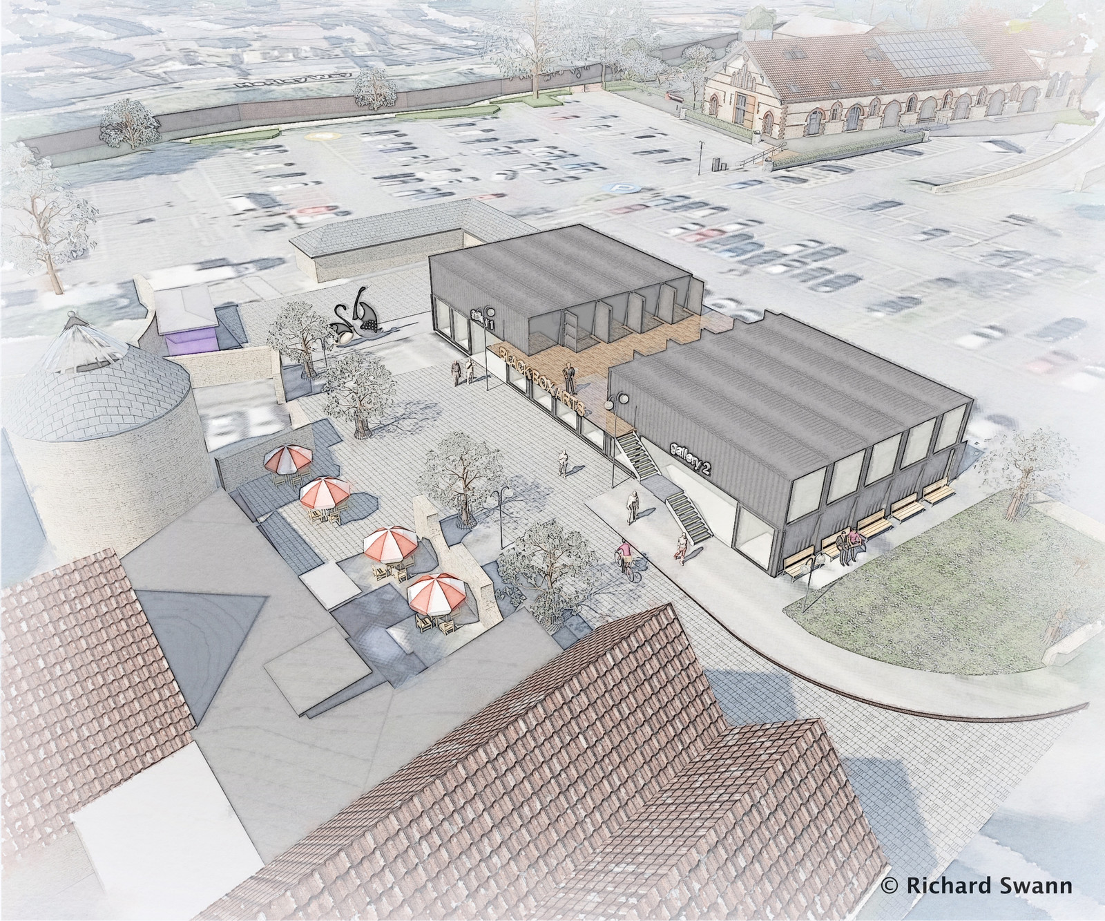 More recently studies have been undertaken by the practice to identify two areas where enhancements would help adjacent facilities at the Cheese & Grain and the Black Swan Arts through place making. See images on the right.