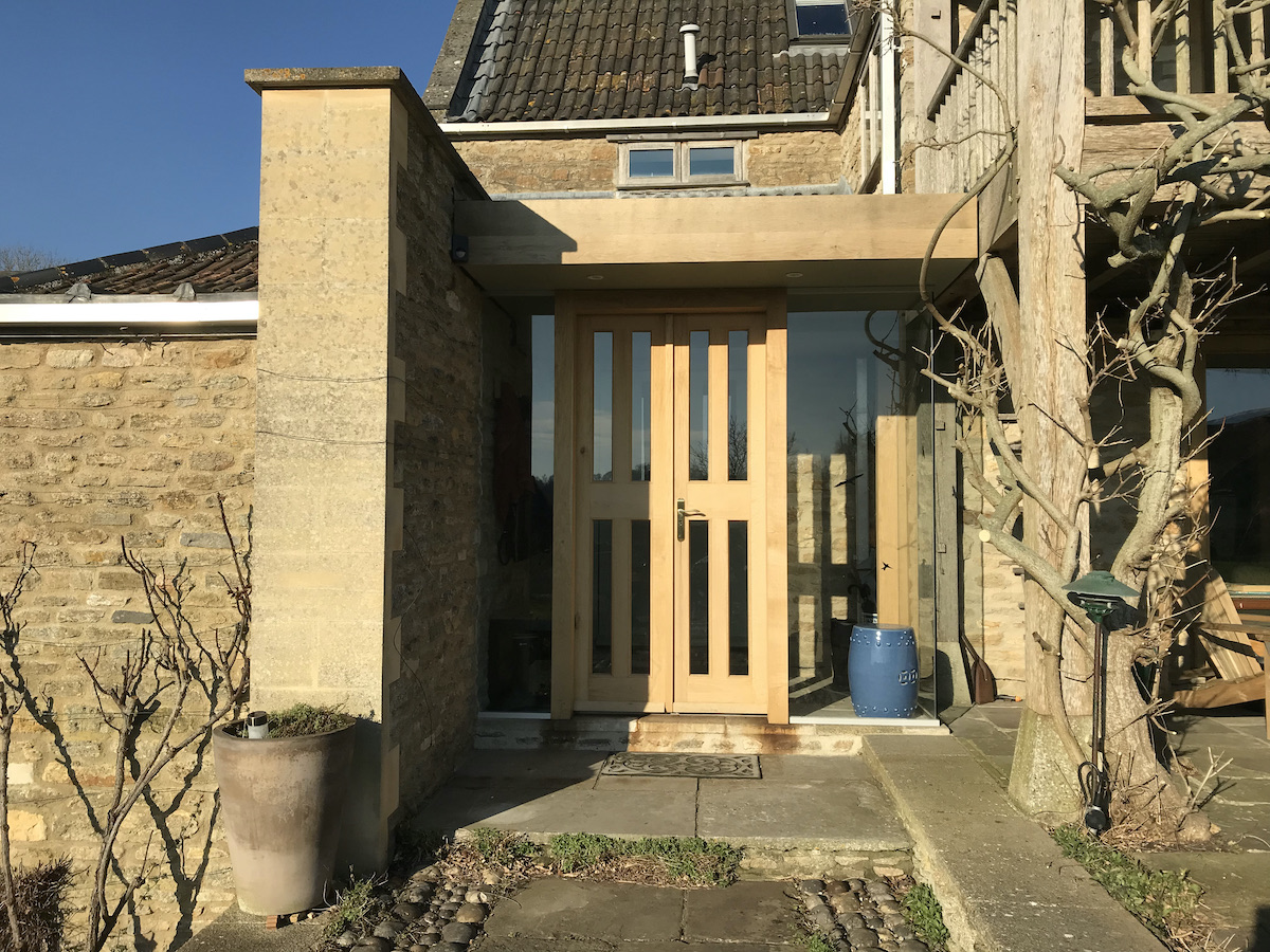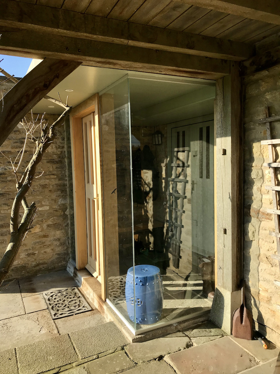 This porch is an addition to a makeover we undertook, to update an older barn conversion. The owners were keen to keep the appearance of the existing front door, but did not want a visible box added that would have spoilt the look of the house.