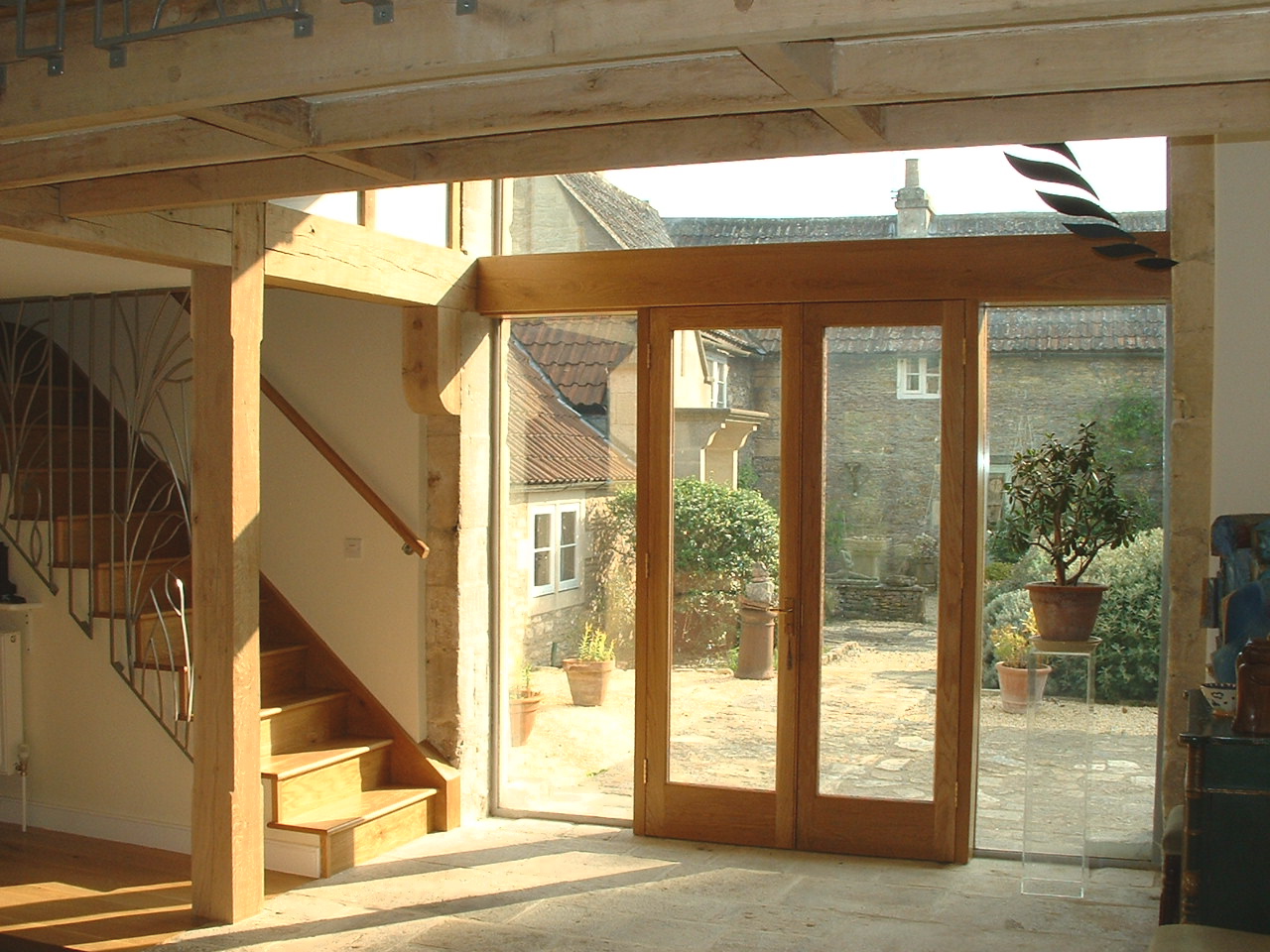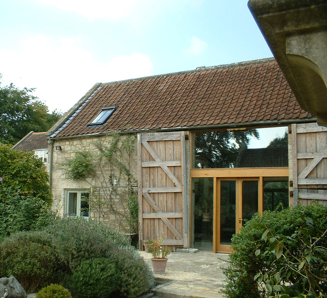 Restoration of a milking parlour and barn to a guest suite and principal living area. Passive Solar heating with shading using the barn doors and recovered flagstones together with super-insulation gives comfortable year round occupation.