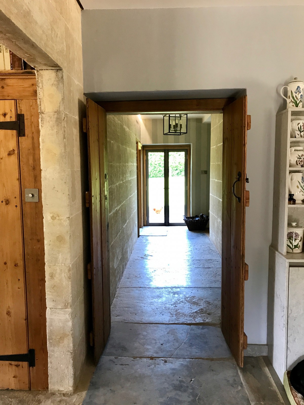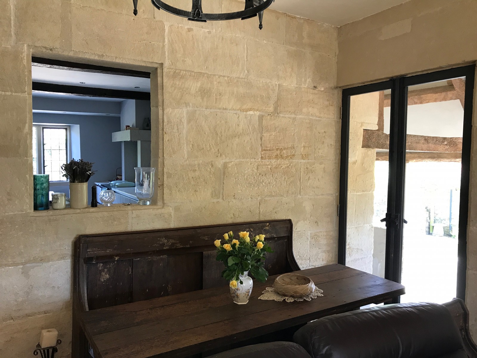 Manor Farm is a delightful Listed 18th Century 'model' farm on the site of and incorporating remnants of a former Manor. The buildings and grounds are currently undergoing major refurbishment and alterations in close liaison with the conservation officer. Sensitive stonework repair has been undertaken by specialist masons. All the roofs were stripped, repaired and retiled; the lean-to loggia and dovecot were extensively repaired and re-roofed with stone slates, the original material. Replacement and additional bespoke metal framed leaded light casements have been installed in Daulting stone or Oak surrounds . All the services were completely renewed throughout the house, with new bathrooms and kitchen have been sensitively incorporated.