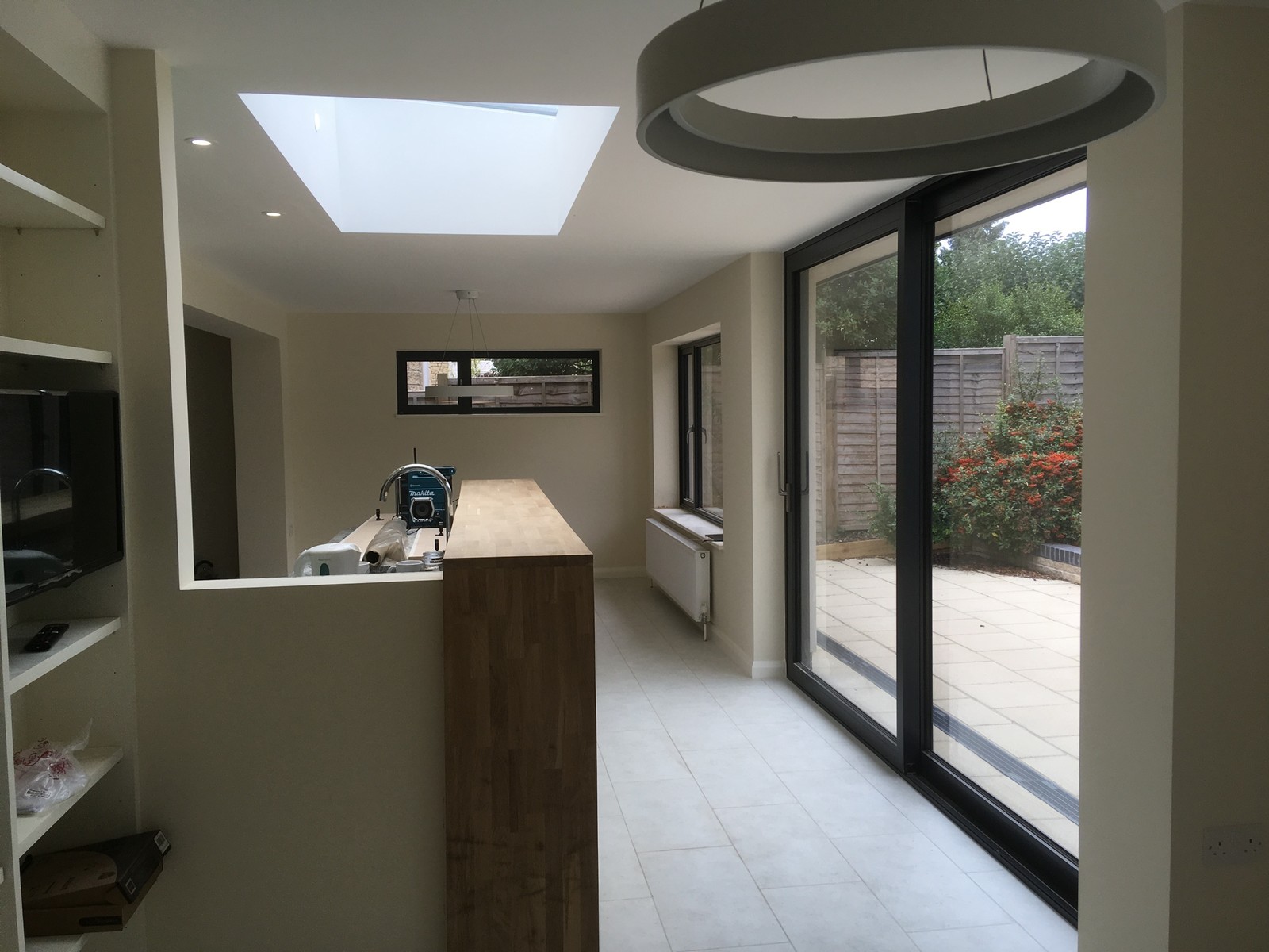 This 1970's estate home was too cramped for the growing family. After exploring several options for extending the ground floor and bedrooms, the back of the house was opened up to create a large open family room with dining area, kitchen and living room, a new cloakroom with shower and adequate coat and boot store. What a transformation!